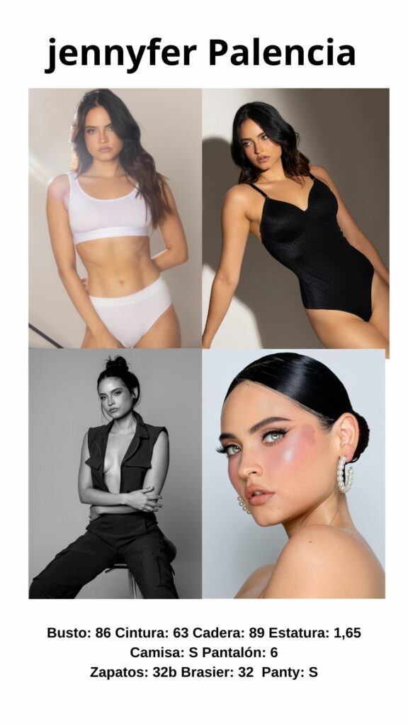 Mi nombre es Jennyfer Palencia, nací en Bogotá sin embargo he vivido en Medellín toda mi vida por lo que me considero super paisa. Comencé modelando ocasionalmente mientras estudiaba mi carrera universitaria, cuando me gradué como profesional en mercadeo tuve que decidir entre tener un trabajo estable en oficina o dedicarme seriamente al modelaje, decidí tomar el riesgo ya que modelar es mi verdadera pasión. Aprovecho y amo el contraste de mis rasgos: ojos verdes, cabello negro y pecas, me hacen única y es un factor diferenciador que sé que puede generar valor para muchas marcas.